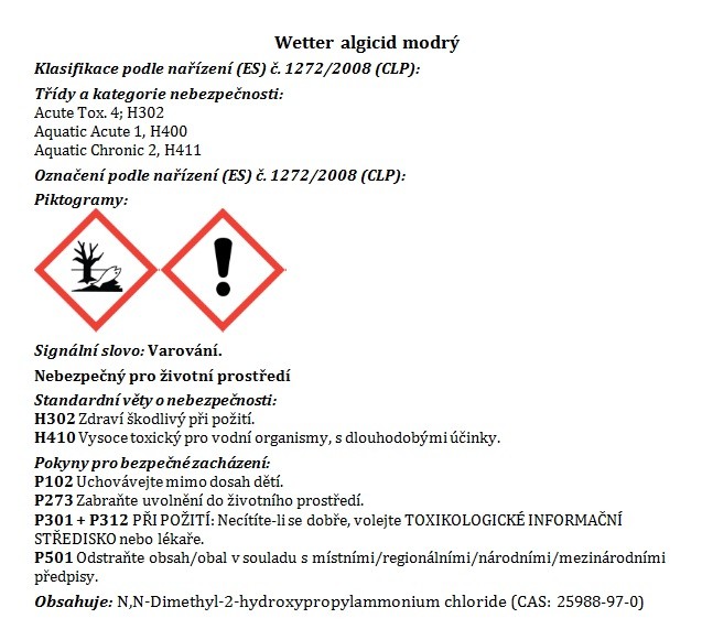 Pro WETTER algicid modrý 3 l prozatím nemáme nastaveny žádné technické parametry.