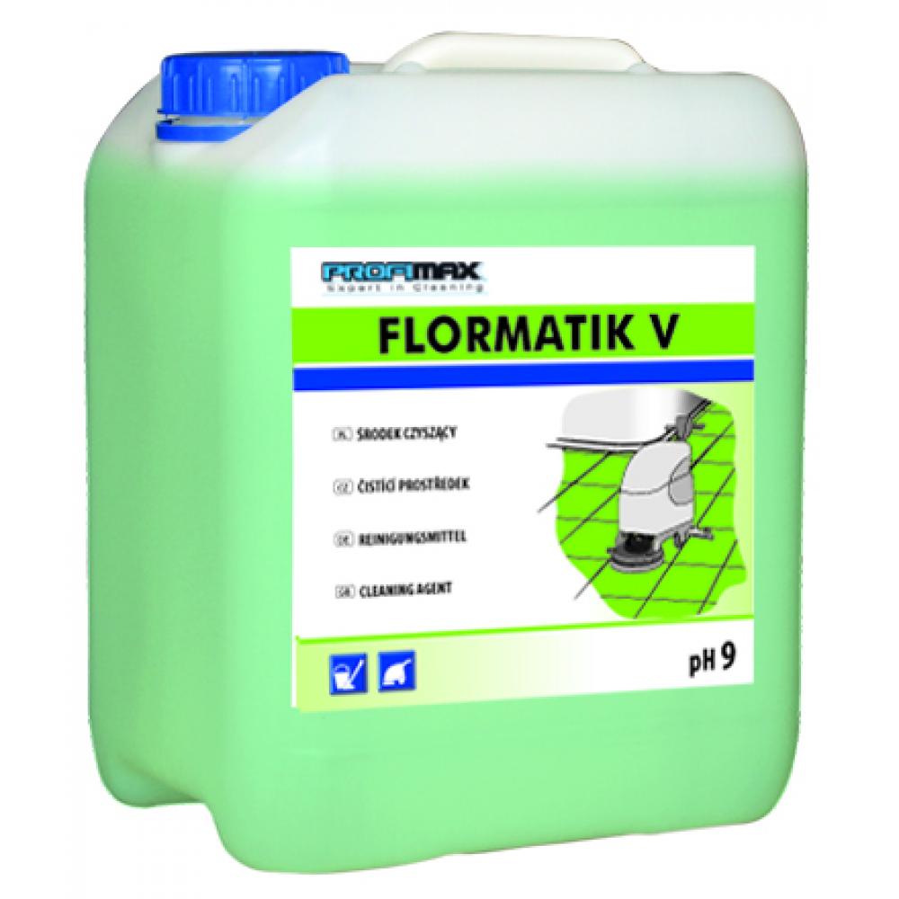 FLORMATIK V. Vysoce účinný čistící prostředek do průmyslového prostředí (strojírenské výrobní haly a dílny). Čistící prostředek vhodný pro použití do mycích automatů i pro ruční mytí. Vhodný pro voděodolné tvrdé podlahy jako např. beton, keramické dlaždice, přírodní i umělý kámen, PVC, obkladačky, sanitární keramika, chrom a chromovanou ocel, apod.