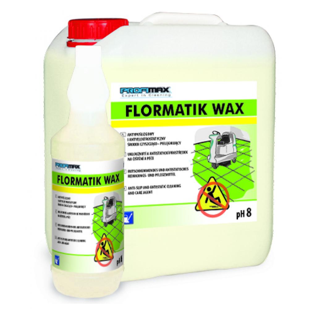 Chemie na čištění podlah FLORMATIK WAX - PROTISKLUZOVÝ!! - strojní mytí . Nepěnivý čistič se svěží vůní pro všechny podlahy s omyvatelným povrchem. Čistící prostředek je vhodný pro všechny podlahy s omyvatelným povrchem, jako plast, PVC, linoleum, Colovinyl, přírodní a umělý kámen, guma a epoxidová pryskyřice. Snižuje kluzkost podlahy. FLORMATIK WAX je přípravek pro mnohostranné použití, je vhodný do strojů i na stírání mopem.