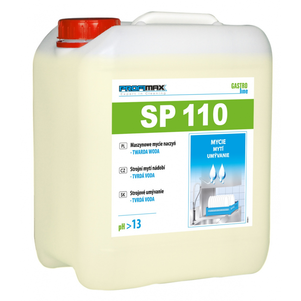 SP 110 - strojní mytí nádobí do profesionálních myček nádobí, tvrdá voda - Navrženo pro mytí nádobí v průmyslových myčkách různých typů. Účinně odstraňuje veškeré organické nečistoty a usazeniny z kávy a čaje. Doporučuje se používat všude tam, kde je nežádoucí zápach chlóru. Například k mytí nádobí z keramiky (v případě, že výrobce keramiky umožňuje myčku), nerezové oceli a plastů.Technické parametry