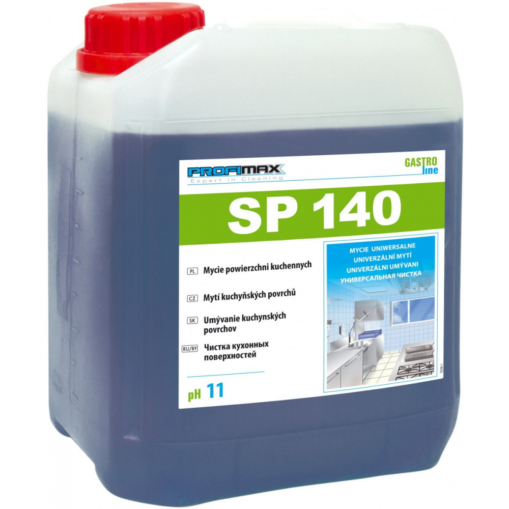 PROFIMAX SP 140 - je určen k ručnímu čištění všech tvrdých povrchů v kuchyních, jídelnách, restauracích atd. vyrobených z nerezové oceli, glazury, skla, plastu, gumy, smaltu, porcelánu. Účinné složení zajišťuje, že produkt účinně odstraňuje všechny organické a anorganické nečistoty (bílkoviny, mastnoty, prach).Technické parametry