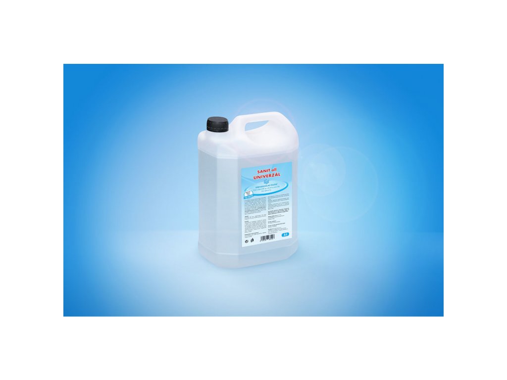 Dezinfekční prostředek Sanit All Univerzál - zanechává ochranou polymerovouvrstvu. Bezpachový, bezalkoholový a bezchlórový prostředek určen k rychlé dezinfekci jakéhokoliv povrchu a prostoru. Nepoškozuje žádné materiály jako je sklo, dřevo, kov, plast, papír, textilii nebo gumu - je nekorozivní. Prostředek má silný, dlouhotrvající antibakteriální a antivirový protiplísňový účinek. Pomocí ošetření tohoto přípravku vznikne na povrchu ochranná polymerová vrstva, která má baktericidní (G+ a G- bakterie), virucidní (včetně Poliovirus, Adenovirus, virus BVDV, Vakcinie Virus), tuberkulocidní, mykobaktericidní (M. terrae, M. avium), fungicidní a algicidní účinky.
