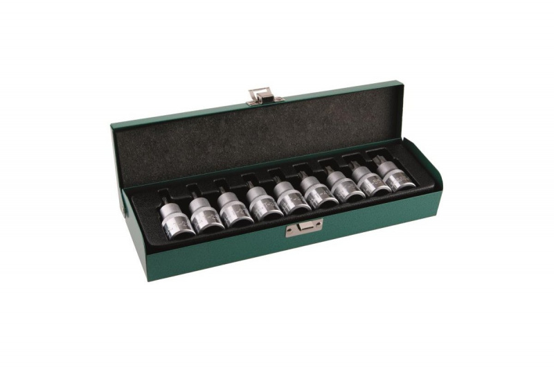 vysoce kvalitní sada hlavic TORX - 9ks vyrobeno z chromvanadiové oceli hlavice vyrobeny kováním záruka kvality 10 let odolná plechová schránka velikost ráčny: rozměry hlavic: T20, T25, T27, T30, T40, T45, T50, T55, T60Technické parametry