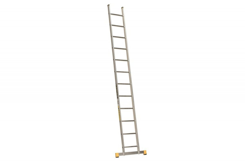 žebřík hliníkový jednodílný opěrný FORTE ALVE počet příček 8 až 24 délka 2,41 až 6,95 m šířka od 348 do 420 mm vysoce sofistikovaná řada FORTE v dokonalém žluto-černém designu splňuje ta nejnáročnější kritéria, její konstrukce byla vyvinuta ve spolupráci s profesionálními zákazníky tak, aby zaručovala vysokou odolnost a spolehlivost při zachování co možná nejmenší váhy výrobků určený pro časté využití v náročných podmínkách obsahuje stabilizátor 144305-317 nosnost 150 kgTechnické parametry