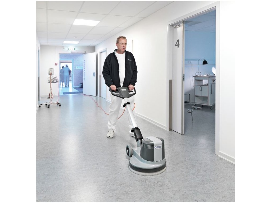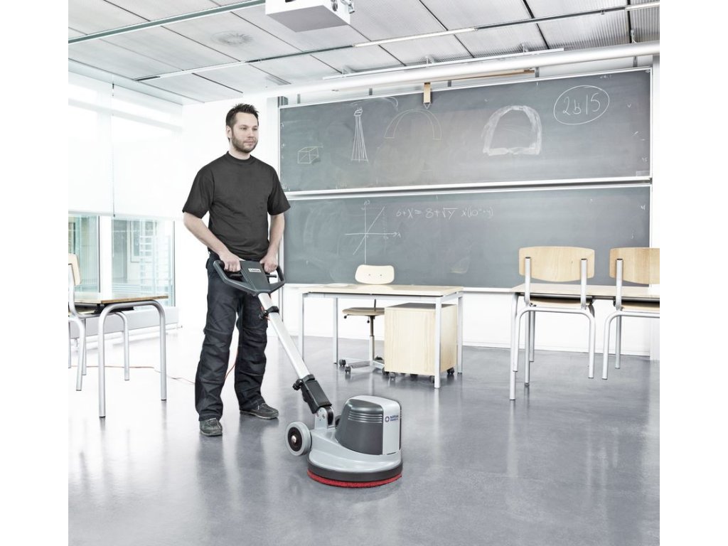 Model FM400 nabízí výběr ze dvou rychlostí 185 nebo 370 ot/min pro snadnou a efektivní údržbu podlah. Tento jednokotoučový stroj dokáže drhnout, leštit a šamponovat pevné podlahy a koberce.
