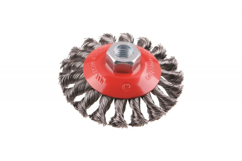 kartáč miskový - copy se závitem do úhlové brusky M14 x vhodný pro těžké kartáčovací práce, na odstraňování barev, rzi, otřepů a zbytků po sváření a jiných nečistot průměr drátu: 0,5 mmTechnické parametry