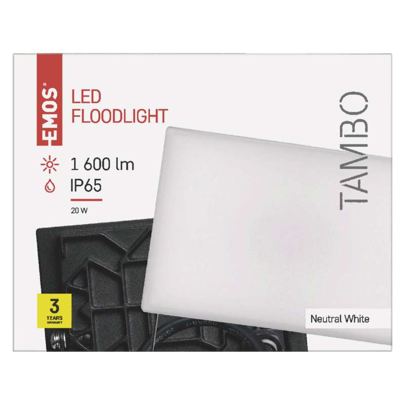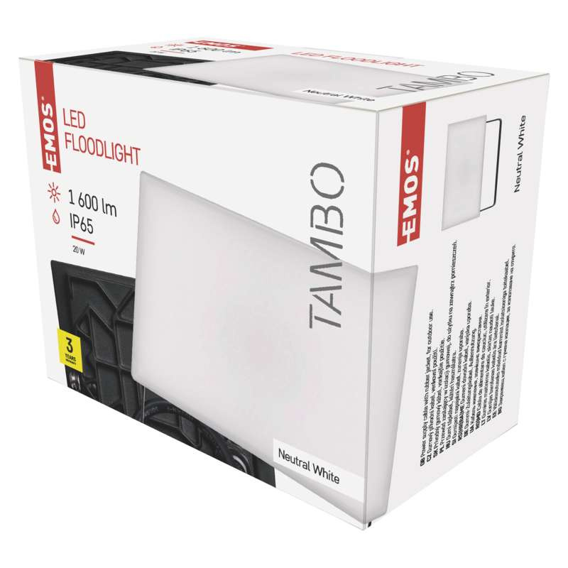 akumulátor: neuvádí se|barva: černá|barva světla: neutrální bílá|délka přívodního kabelu: 30 cm|doba svícení na AKU: neuvádí se|dosah PIR senzoru: nemá PIR|energetická třída (od 1.9.2021): neuvádí se|frekvence: 50/60 Hz|index podání barev (CRI): Ra > 80|krytí: IP65|materiál difuzoru: plast (PC)|materiál přívodního kabelu: guma|materiál těla: hliník|náhrada za žárovku: 170 W|napětí: 220–240 V~|PIR senzor: ne|počet průchozích zásuvek: 0|příkon: 20 W|prodejní obal: 1 ks, krabice|proud: 100 mA|řada: TAMBO|rozměr: 135 × 101 × 55 mm|rozsah pracovní teploty: -20 °C až +40 °C|stupeň ochrany proti mechanickým nárazům: IK08|světelný tok: 1 600 lm|teplota chromatičnosti: 4 000 K|typ přívodního kabelu: neuvádí se|typ průchozích zásuvek: neuvádí se|účiník: > 0,9|úhel vyzařování: 120°|záruční doba: 3 roky|zdroj světla: LED|životnost: 25 000 hodin|zkušební žárovka součástí balení: ne