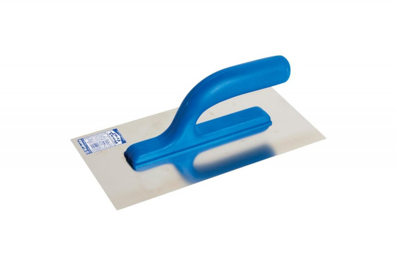 hladítko nerez hladké 270 x 130 mm plastová, ergonomická rukojeť: PS - polystyren nerezový, kyselině odolný plech tl. 0,7 mm slouží k nanášení lepidel pod obklady a dlažby, stěrek, štuků, omítek, tmelů a dalších stavebních hmotTechnické parametry
