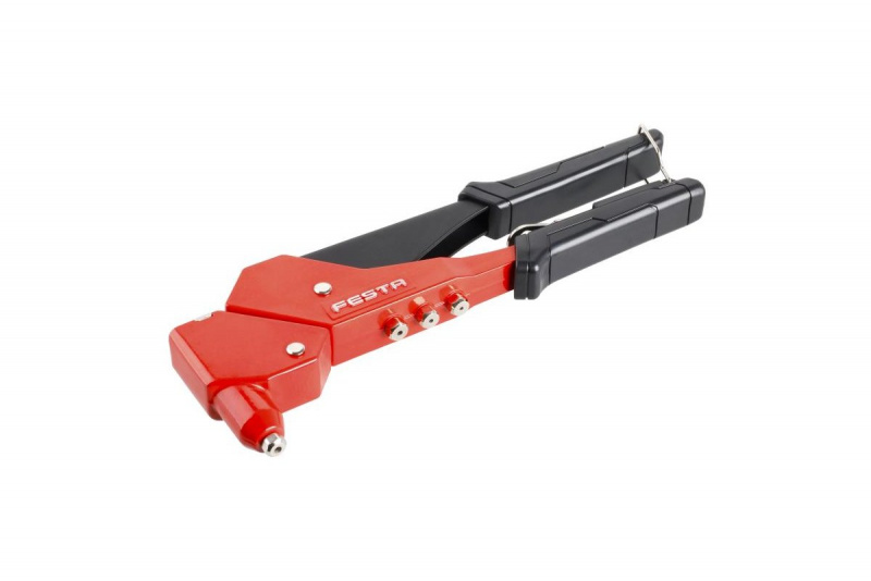 kleště nýtovací otočná hlava 360° robustní ocelový rám ocelové poniklované čelisti plastová rukojeť nýty (Alu, ocel, nerez, měď): prům. 2,4/3,2/4,0/4,8Technické parametry