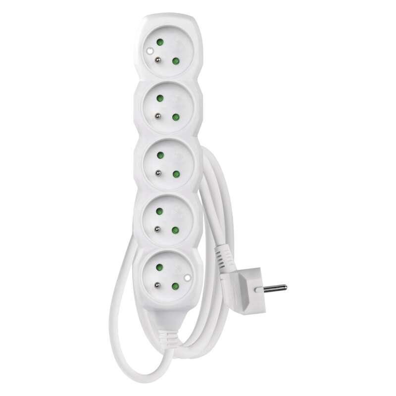 barva: bílá|délka: 1,5 m|dětské clonky: ano|materiál zásuvky a vidlice: plast|max. zátěž: 2 300 W|napětí/proud: 250 V~/10 A max.|počet zásuvek: 5× 2P + PE|prodejní obal: 1 ks, závěs|typ izolace: PVC|USB výstup: ne|vodič: H05VV-F3G 1 mm²|vypínač: ne