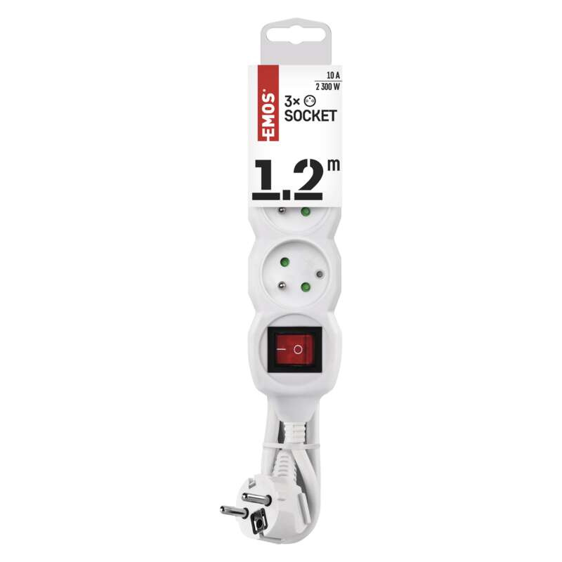 barva: bílá|délka: 1,2 m|dětské clonky: ano|materiál zásuvky a vidlice: plast|max. zátěž: 2 300 W|napětí/proud: 250 V~/10 A max.|počet zásuvek: 3× 2P + PE|prodejní obal: 1 ks, závěs|typ izolace: PVC|USB výstup: ne|vodič: H05VV-F3G 1 mm²|vypínač: ano