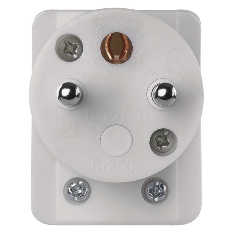 barva: bílá|dálkový ovladač: ne|dětské clonky: ne|dosah signálu: neuvádí se|easy learning: ne|krytí: IP20|materiál: plast|max. zátěž: 3 680 W|možnost ovládání: ne|napětí/proud: 250 V~/16 A max.|počet pólů: neuvádí se|počet zásuvek: neuvádí se|pozice ochranného kontaktu: neuvádí se|přenosoná frekvence: ne|prodejní obal: 1 ks, závěs|produkt: vidlice pro pohyblivý přívod|typ: FRENCH|venkovní použití: ne|vypínač: ne