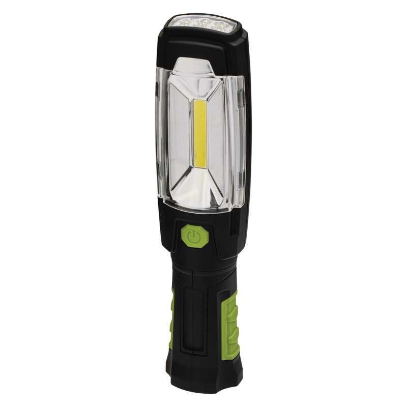 barva: černo-zelená|baterie součástí balení: ano|doba nabíjení: 4 h|doba svícení: 3,5–24 h|doba svícení detail: COB LED 50 % – 7 h, COB LED 100 % – 3,5 h, LED 100 % – 24 h|dosvit: COB LED 50 % – 19 m, COB LED 100 % – 26 m, LED 100 % – 27 m|fokus: ne|hmotnost: 265 g|LED indikace nabíjení: ano|LED indikace stavu akumulátoru: neuvádí se|materiál: ABS plast|maximální dosvit: 27 m|maximální světelný tok: 380 lm|nabíjecí: ano|napájení: Li-Ion akupack|nárazuvzdornost: ano|počet režimů svícení: 3|příslušenství: napájecí adaptér do sítě, napájecí adaptér do automobilu|prodejní obal: 1 ks, krabice|režimy svícení: COB LED 50 %, COB LED 100 %, LED 100 %|rozměr: 40 × 55 × 245 mm|speciální funkce: funkce rychlého vypnutí, funkce ochrany baterie|světelný tok: COB LED 50 % – 200 lm, COB LED 100 % – 380 lm, LED 100 % – 20 lm|typ baterie: 2 500 mAh/3,7 V|typ napájecího konektoru: neuvádí se|voděodolnost: ano (IP43)|vybavení: otočná rukojeť, 1× hák, 2× magnet|záruční doba: 2 roky|zdroj světla: COB LED + LED