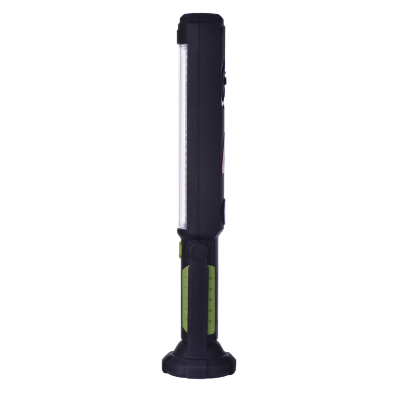barva: zeleno-černá|baterie součástí balení: ano|doba nabíjení: 3 h|doba svícení: 2–26 h|doba svícení detail: COB LED 50 % – 4 h, COB LED 100 % – 2 h, 5× LED 26 h|dosvit: COB LED 50 % – 22 m, COB LED 100 % – 30 m, 5× LED 24 m|fokus: ne|hmotnost: 537 g|LED indikace nabíjení: ano|LED indikace stavu akumulátoru: ne|materiál: ABS plast + guma|maximální dosvit: 30 m|maximální světelný tok: 500 lm|nabíjecí: ano|napájení: Li-Ion akupack|nárazuvzdornost: ano|počet režimů svícení: 3|příslušenství: napájecí adaptér + adaptér do automobilu|prodejní obal: 1 ks, krabice|režimy svícení: COB LED 50 %, COB LED 100 %, 5× LED|rozměr: 67 × 76 × 317 mm|speciální funkce: funkce rychlého vypnutí, funkce ochrany baterie|světelný tok: COB LED 50 % – 270 lm, COB LED 100 % – 500 lm, 5× LED 15 lm|typ baterie: 2 000 mAh/3,7 V|typ napájecího konektoru: 3,0 × 1,0/12 mm|voděodolnost: ano (IP43)|vybavení: naklápěcí rukojeť, 1× hák, 3× magnet|záruční doba: 2 roky|zdroj světla: COB LED + 5× LED