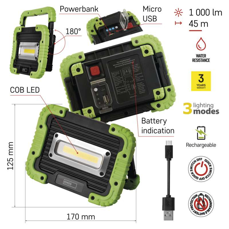 K produktu COB LED nabíjecí pracovní reflektor P4533, 1000 lm, 4400 mAh namáme žádné video.