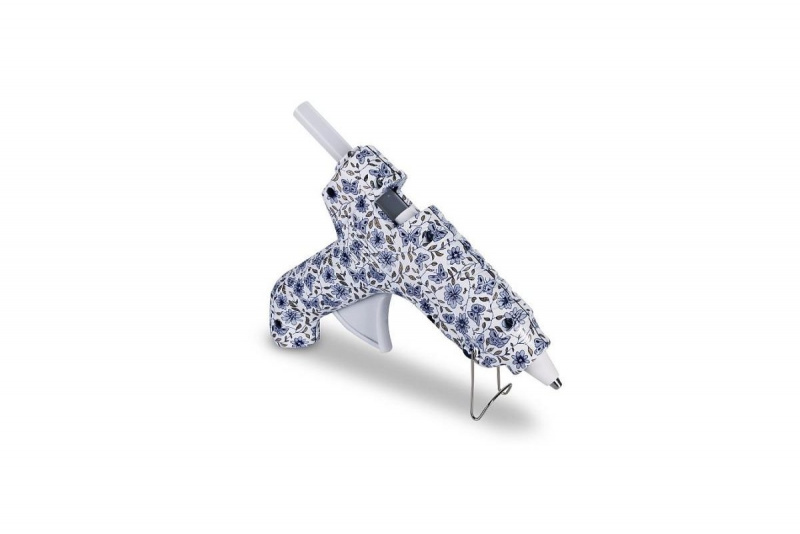 designová tavná lepící pistole s květinovým vzorem určená pro tavné tyčinky o průměru 7 - 7,5 mm a 11,0 - 11,5 mm pistole je ruční přenosné zařízení, v níž se tuhé lepidlo taví a ručně mechanicky vytláčí bodově, nebo krátkou housenkou na plochy určené k lepení nebo fixaci pistole se skládá z tavné komory vyhřívané topným elektrickým článkem na konstantní teplotu pistole je opatřena podávacím zařízením, které slouží k vtlačování tyčinky do tavné komory posun tyčinky do tavné komory se provádí zmáčknutím spouště otvor slouží ke vkládání tyčinky tavného lepidla pevný spoj již po 20 - 30 sekundách spoj odolává povětrnostním podmínkám Použití je určena k výrobě a opravám hraček, modelů, umělých květin, dekorací a nábytku, bytových jader, výborné v elektronice, autoopravárenství apod. výborně lepí: dřevo, keramiku, sklo, plast, porcelán, kovy umožňuje zalepit netěsnosti oken, umyvadel apod.Technické parametry