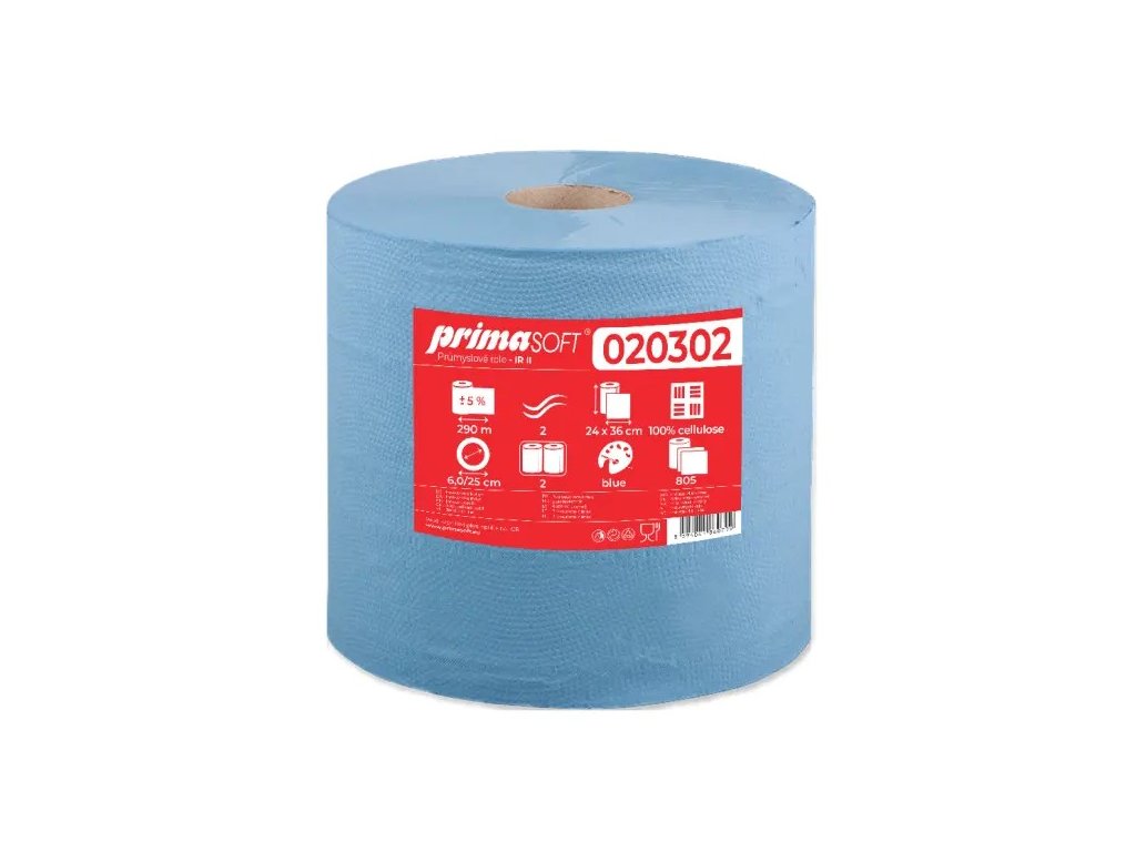 100% celulóza, modrá, délka návinu 290m, max. průměr 25 cm, rozměr útržku 24 x 36 cm, 2vrstvý, 2 role v balení. Multifunkční průmyslové papírové utěrky v roli na stírání vody, olejů, rozpouštědel a čisticích prostředků. Vyrobeny z celulózy v modré barvě s velkou délkou návinu. Při utírání nevytváří prach.