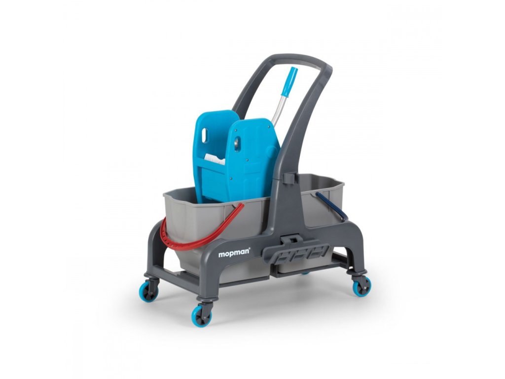 Profesionální úklidový vozík s pevnou plastovou konstrukcí a tichými koly, který obsahuje: