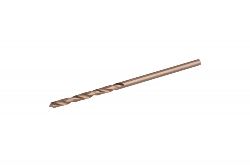 vysoce kvalitní vybrušovaný vrták HSS-Co. 5% DIN 338 ve zlatohnědé povrchové úpravě úhel ostření 135° vrták je určen k vrtání legované i nelegované oceli, železa, litiny nebo barevných kovů až do pevnosti 1400 MPaTechnické parametry