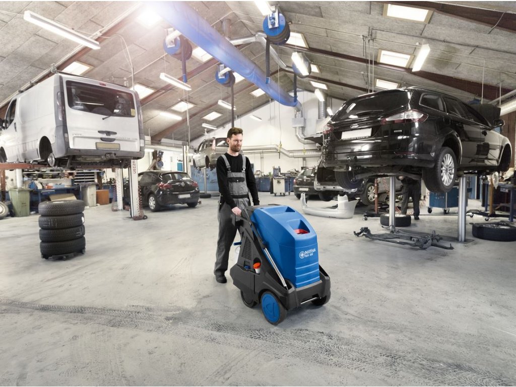 Pro většinu našich zákazníků je důležitým aspektem práce také možnost snadného ukládání příslušenství. Modelová řada MH 4M je vybavena inovativním systémem uložení vysokotlakých pistolí, nástavců a otočného háku pro uložení elektrického kabelu. Také uložení nádob na detergent pro vysokotlakou aplikaci dvou čisticích prostředků zjednodušuje práci. Řada MH 4M přináší do střední kategorie horkovodních vysokotlakých strojů zcela nové koncepty, které splňují nejvyšší požadavky na produktivitu práce. MH 4M je vybaven průmyslovým vysokotlakým čerpadlem NA5 se 3 keramickými písty a 4-pólovými motory s vysokou účinností. Systém řízení čerpadla Flow Activated zvyšuje uživatelský komfort, bezpečnost práce prodlužuje životnost čerpadla. MH 4M je vhodný pro všechny středně a více náročné úkoly při čištění s ohřátou vodou s dobou používání 4-6 hodin denně. Výměník kategorie EcoPower šetří díky vysoké účinnosti palivo a nabízí vysoký topný výkon. Servis a údržba může být provedena rychle, protože všechny důležité části stroje jsou snadno dostupné. Diagnostický a varovný systém modelů MH 4M poskytuje včasné upozornění pro údržbu. Stroj MH 4M je zkonstruován se snahou o nejlepší možnou manévrovatelnost stroje. Proto je stroj osazen 4 velkými koly na masivním ocelovém podvozku. Další důležitým konstrukčním prvkem, usnadňujícím manipulaci je umístění těžiště. mosazná hlava čerpadla se 3 keramickými písty výměník EcoPower s vysokou účinností snižuje spotřebu paliva EcoMode nastavení ohřevu pro optimalizaci nákladů integrovaný diagnostický systém Flow Activated systém řízení čerpadla u vybraných modelů varovný systém úbytku oleje varovný systém nedostatku paliva inovativní konstrukce usnadňuje transport strojeDoplňkové parametry
