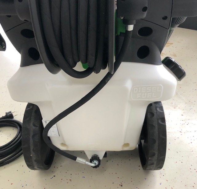 8 metrů vysokotlakou hadicí a automatickým systémem start / stop.