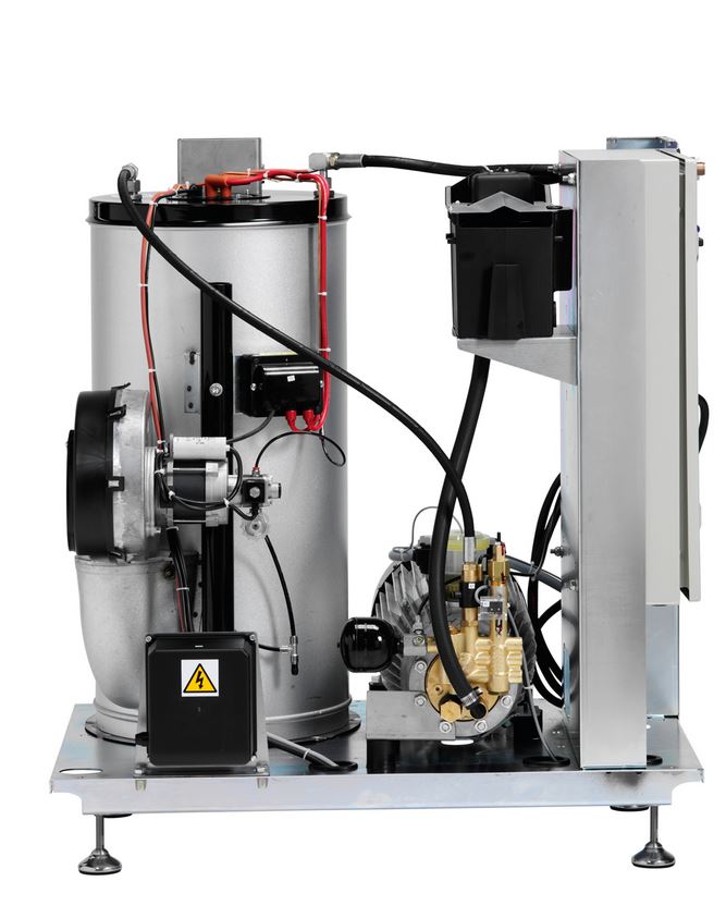 Stacionární horkovodní stroj pro náročné čisticí úkoly v automobilovém a potravinářském průmyslu.