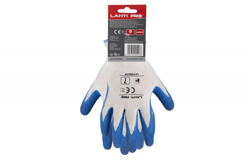 materiál: polyester, latex potažené latexem s pórovitou strukturou, zvyšujícím odolnost proti prodření a roztržení a zlepšuje přilnavost elastické a roztažitelné - zajišťují velmi dobrý úchop a vysoký komfort práce ukončené lemem široký rozsah použití (např. přesná práce, práce ve skladu, stavebnictví, zahradnictví EN 420Technické parametry