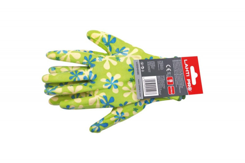 rukavice nitril zelené LAHTI PRO materiál: polyester, nitril potažené nitrilem po celé délce úchopové části a na straně prstů, zajišťující zvýšenou odolnost vůči mastnotě elastické a roztažitelné - ideálně se přizpůsobují tvaru dlaně ukončené stahováním široký rozsah použití (např. přesná práce, domácnost, zahradnictví) EN 420Technické parametry