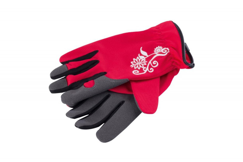 speciálně vyvinuté pro zahradní práce dlaň: umělý semiš hřbet: elastická tkanina Spandex se stahovací gumičkou na zápěstí ozdobný potisk velikost: 7-9Technické parametry