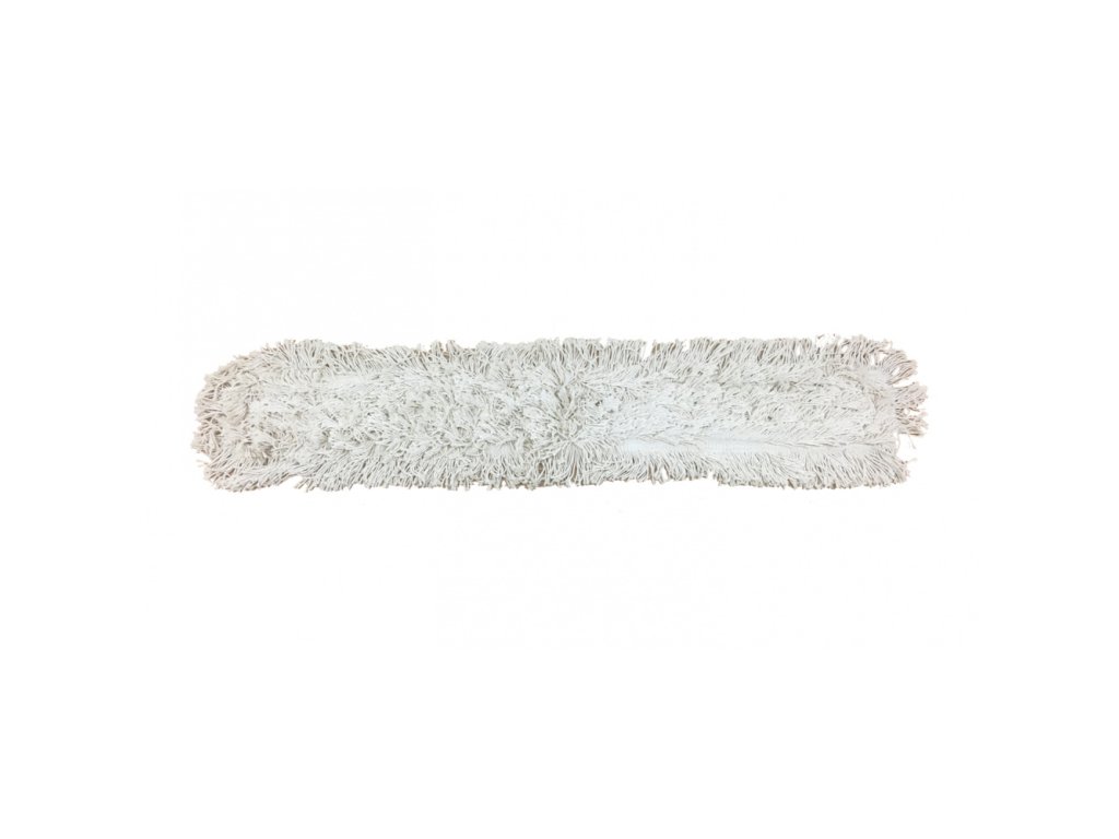 Prachový mop bavlna 100 cm. Bavlněný mop je určený pro vytírání velkých prostor s laminátovou nebo dřevěnou hladkou podlahou jako např. tělocvičny. Pro hladké povrchy doporučujeme mopy celosmyčkové, aby se zabránilo pouštění chloupků. Pokud povrch podlahy bude zakončen hrubšími lištami, tak jsou vhodnější mopy se smyčkovým středem a rozstřiženým krajem. Celorozstřižené mopy lze využít u povrchů staršího rázu pro snadnější úklid (např. starší dřevěné podlahy), ale uvolnění chloupků se nevylučuje. Vzhledem k velikosti a váze mopů se nedoporučuje úklid mokrou cestou. Pro zachování delší životnosti nedoporučujeme mop prát, ale vysát.