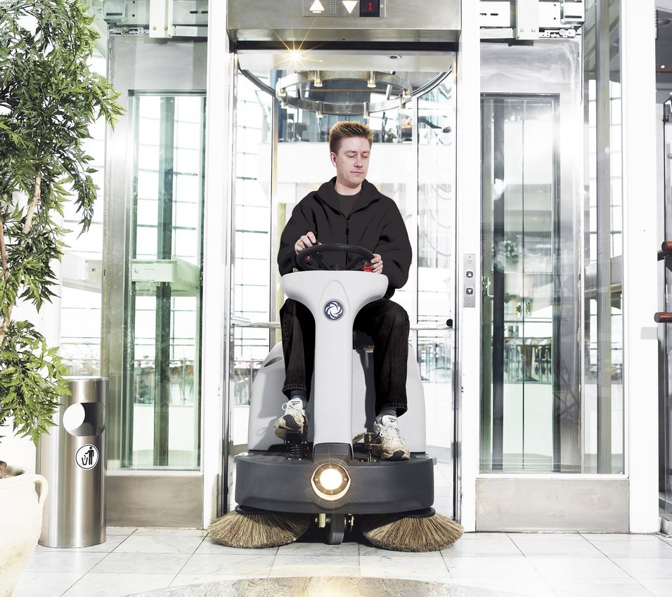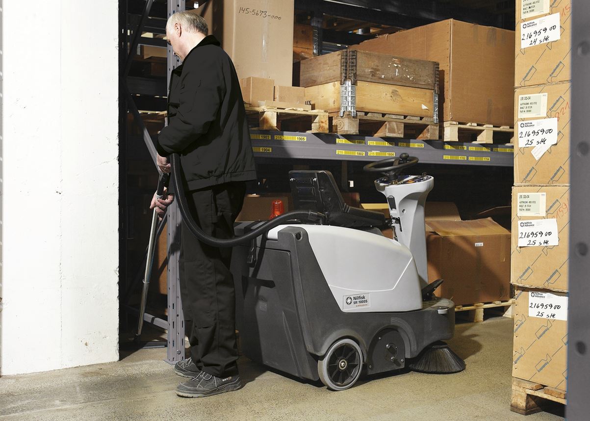 Nilfisk SR 1000S P pracuje rychle (provozní rychlost až 5,5 km/h) a je snadno ovladatelný. Dodává se jak v bateriové tak i benzínové verzi.