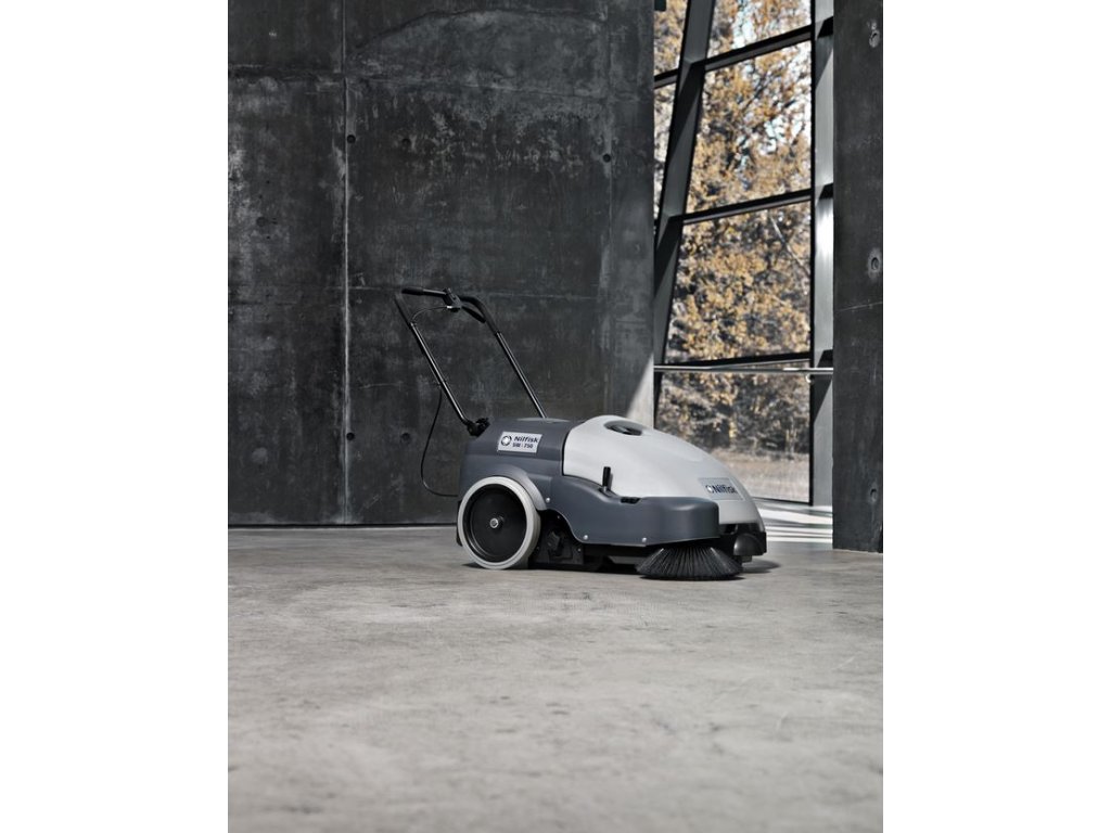 Nilfisk SW 750 komplet je neuvěřitelně tichým zametacím strojem. Díky tomu se dá používat pro celodenní úklid. Nemusíte se ohlížet na to, zda nekoho můžete provozem stroje rušit! Pro jednodušší ovládání je SW 750 vybaven elektrickým pojezdem, který se reguluje pomocí páčky umístěné na rukojeti.