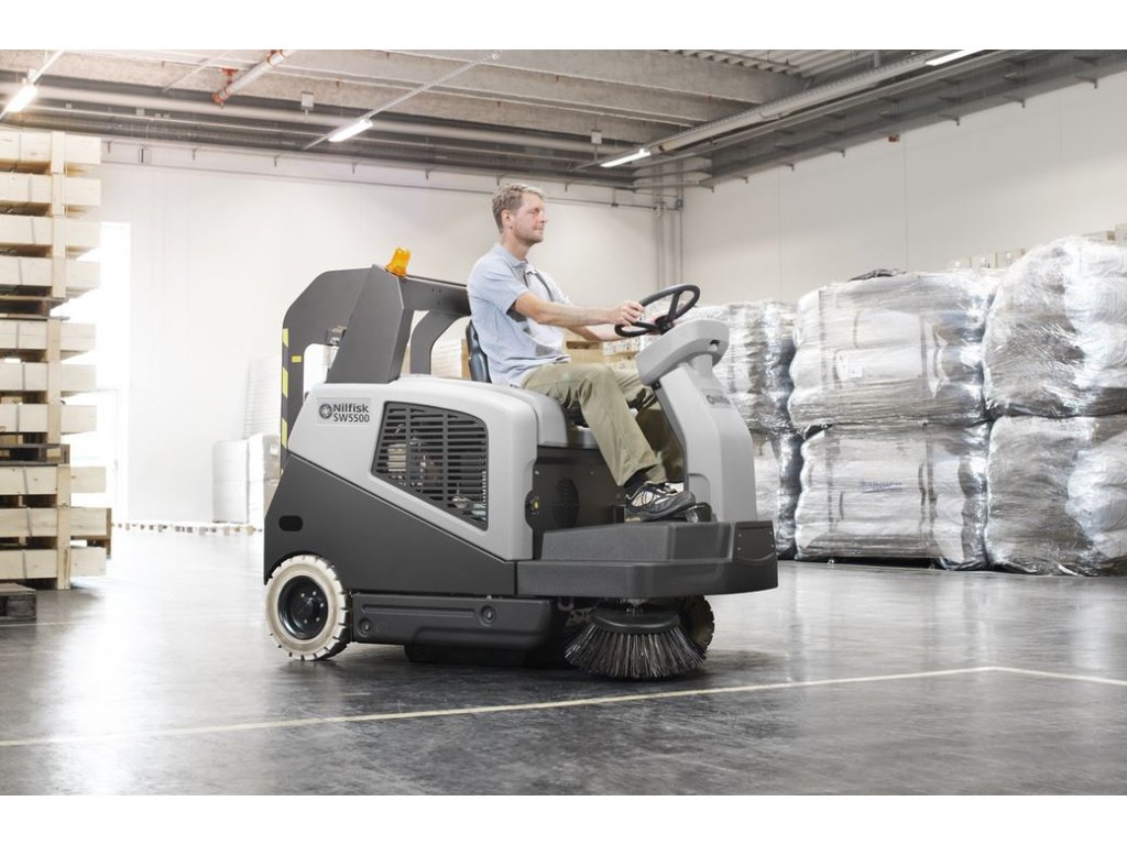 SW5500 nabízí vysoce produktivní, pohodlný a hospodárný způsob zametání velkých podlah a venkovních ploch prachu a nečistot. Navíjecí zametač s velikostí a kapacitou pro urychlení čištění. Denní výhody, jako je vytvoření bezpečnějšího prostředí a snižování celkových nákladů na vlastnictví, činí tento stroj atraktivní volbou pro smluvní čističe, průmyslová místa a továrny, sklady, distribuční centra, sportovní areny, parkoviště velkých maloobchodních prodejen nebo nákupních center, parkoviště, atd.